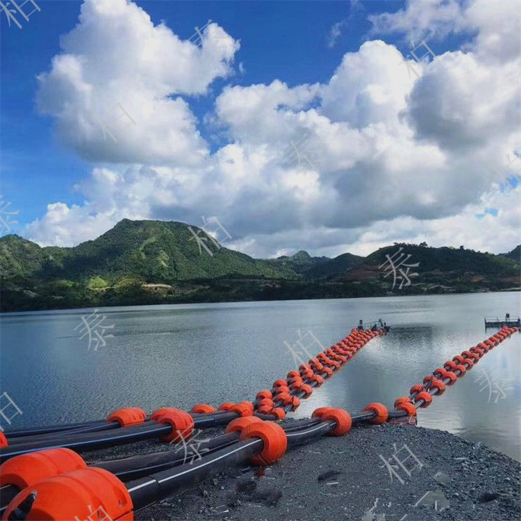 3. 强度高,柔韧性好,有弹性,在水中能弯曲,陆地凹凸面在30度以内的区域,围栏隔离浮漂可以通过管材自身的柔韧性自行调节,管与管之间可以直接连接,在水中不受风浪影响。